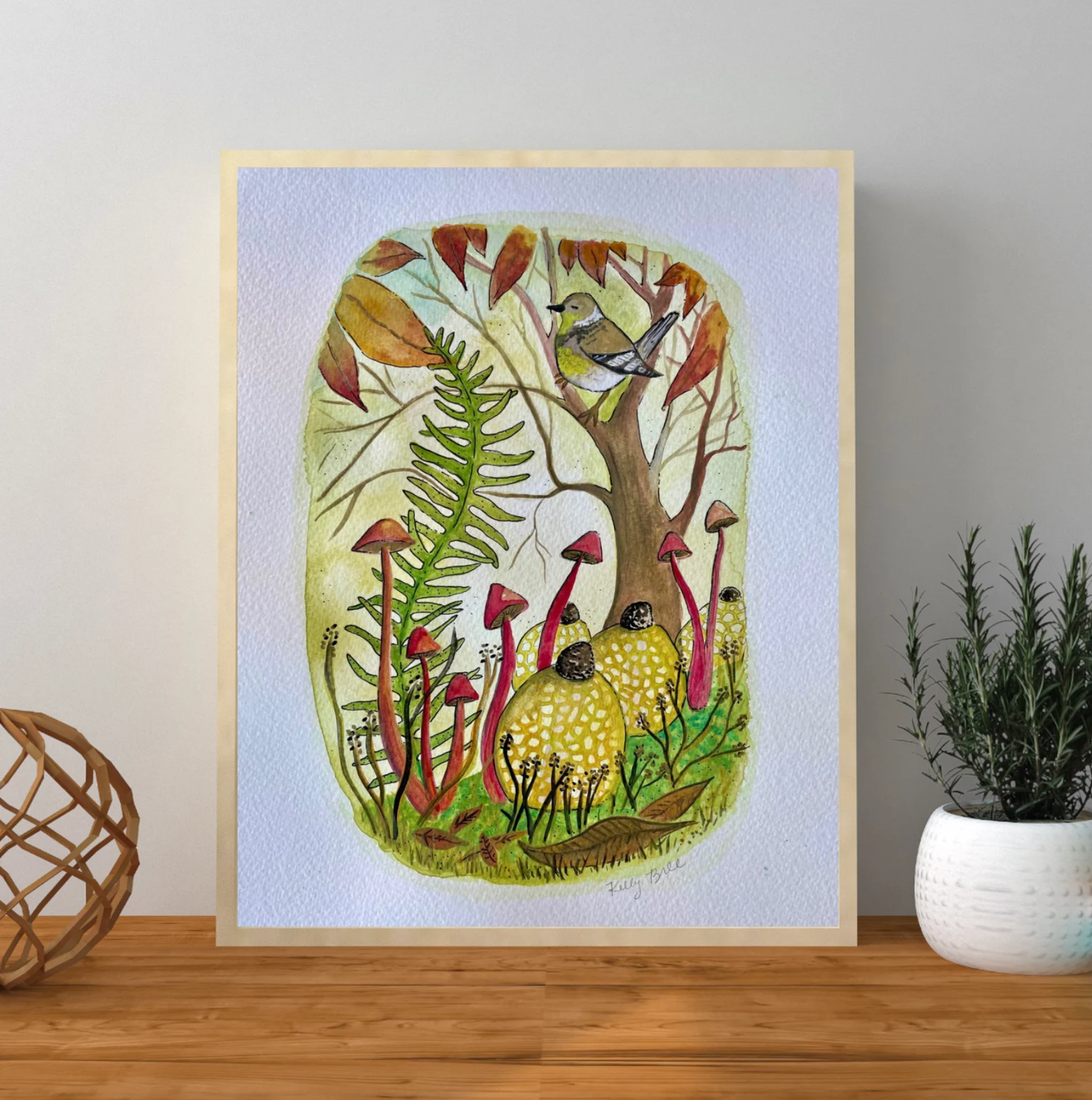 Charming Hand Painted woodland Art print depicting a whimsical, magical forest floor scene. Museum-quality posters made on thick matte paper. Add a wonderful accent to your room and office with these posters that are sure to brighten any environment.